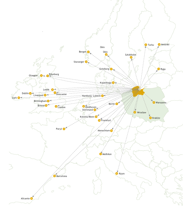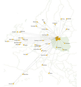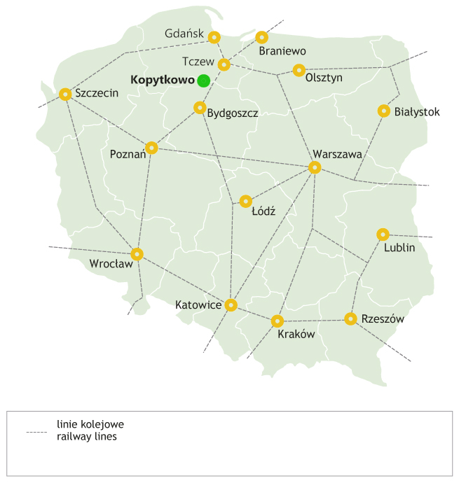 - ok. 80 km od Międzynarodowego Portu Lotniczego Gdańsk im. Lecha Wałęsy.